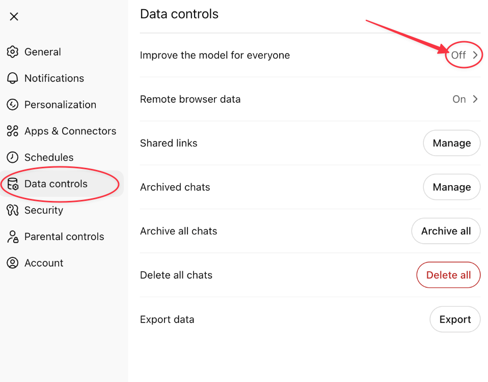The good news is you can turn it off. Most major AI platforms have a setting that stops your data from being used for model training. It takes about 30 seconds to find and toggle.